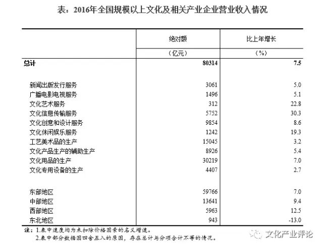 2016年全国规模以上文化及相关产业企业营业收入增长7.5%