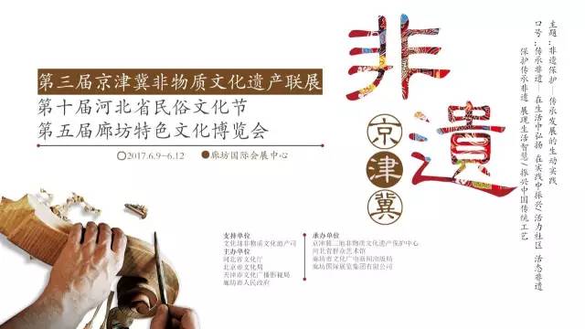 承办单位:京津冀三地非物质文化遗产保护中心、河北省群众艺术馆、廊坊市文化广电新闻出版局、廊坊国际展览集团有限公司