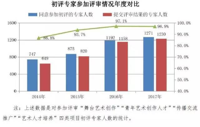 “经国家艺术基金理事会审定、公示,国家艺术基金2017年度立项资助项目1002项,立项率约14.1%”,6月29日国家艺术基金发布“2017年度项目评审报告”,这是连续第四年发布专业性强和权威性高的评审报告,近万字的文字和22个表格,图文并茂地记录了2017年度项目评审的全过程、分析了立项资目的特点。