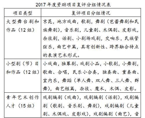 4月5日至4月26日,开展了2017年度资助项目复评工作。复评为会议评审,1883个复评项目按项目类型和艺术门类共分52组,包括大型舞台剧和作品12组,230项;小型剧(节)目和作品12组,384项;青年艺术创作人才15组,678项;传播交流推广7组,329项;艺术人才培养6组,262项。其中,涉及资助金额较大的大型舞台剧和作品、传播交流推广和艺术人才培养项目共821项的申报单位做了现场答辩。