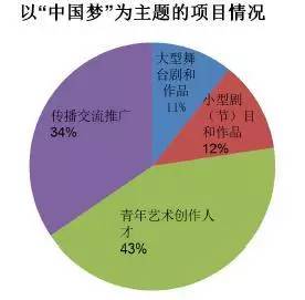 关键词一:“中国梦”,以中华民族伟大复兴中国梦为主题的项目84项,反映改革开放和社会主义现代化建设的伟大实践,全面展示中国特色社会主义发展前景,着力书写人们寻梦理想和追梦奋斗。其中,大型舞台剧和作品9项,小型剧(节)目和作品10项,青年艺术创作人才36项,传播交流推广29项。青年艺术创作人才项目在此类中占比最高,为43%。