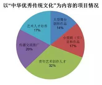 关键词四:“中华优秀传统文化”,以传承和弘扬中华优秀传统文化为目标的项目408项,这些项目围绕民族民间艺术、少数民族文艺和非物质文化遗产,探索进行创造性转化和创新性发展。其中,大型舞台剧和作品57项,小型剧(节)目和作品69项,青年艺术创作人才131项,传播交流推广80项,艺术人才培养71项。这类项目的内容丰富,对传统文化艺术门类的覆盖面广,包括京剧、昆曲、地方戏曲、木偶戏、皮影戏、民族舞蹈、民族音乐、中国画、书法、篆刻、艺术设计和工艺美术等传统艺术门类的创作生产、展览展示、人才培养等内容。