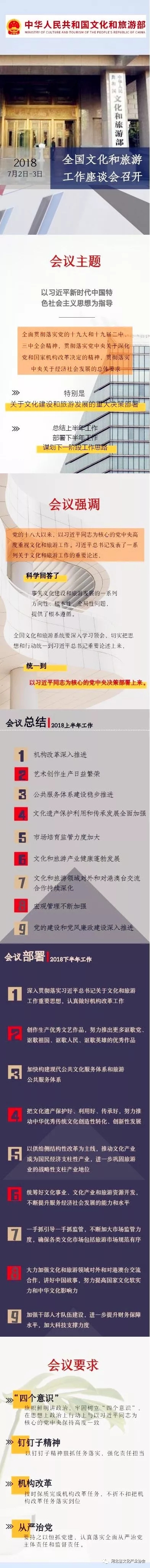 今年上半年,文化和旅游系统以习近平新时代中国特色社会主义思想为指导,深入贯彻落实党的十九大精神,全面落实中央关于文化和旅游工作的决策部署,机构改革深入推进,艺术创作生产日益繁荣,公共服务体系建设稳步推进,文化遗产保护利用和传承发展全面加强,市场培育监管力度加大,文化和旅游产业健康蓬勃发展,文化和旅游领域对外和对港澳台交流合作持续深化,宏观管理不断加强,党的建设和党风廉政建设深入推进。