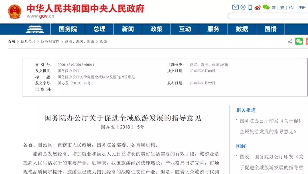 近日,国务院办公厅正式印发《关于促进全域旅游发展的指导意见》,就加快推动旅游业转型升级、全面优化旅游发展环境,走全域旅游发展的新路子作出部署。