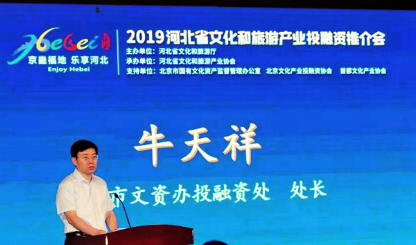 北京市文资办投融资处处长牛天祥同志在致辞中,阐述了京冀文化和旅游产业投融资的现状、展望和建议。