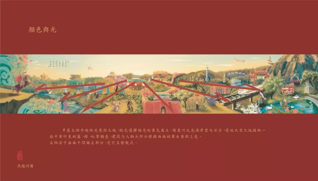 作品“燕赵河图”融合传统绘画特色与数字绘画方式结合,跟随“新国风”绘画风潮,将河北省地域人文、建筑与非遗构图创新,再塑河北印象,营造一副繁荣昌盛的燕赵河图。以此为媒介,衍生一系列既体现河北文化又富有趣味的文创产品。