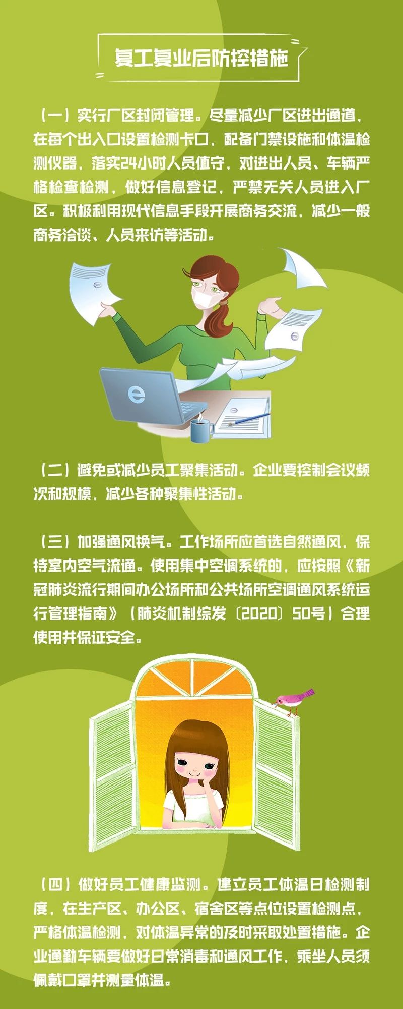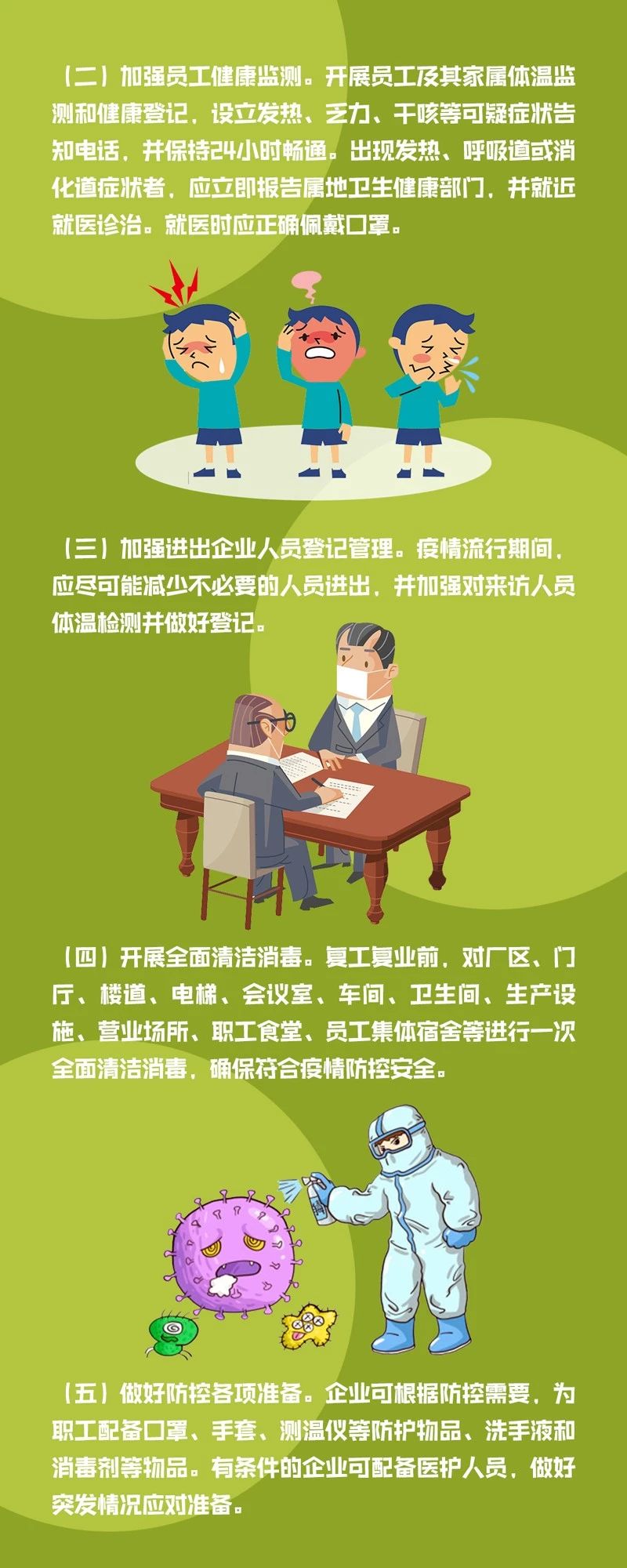 立足经济发展,疫情防控、恢复生产两手抓,是社会的呼唤;严防严控,保证自身和同事安全,是每个人的期盼。我们大家都要本着为自己负责、为企业负责、为社会负责的态度,切实增强防范意识,严格遵守防控措施,自觉做到: