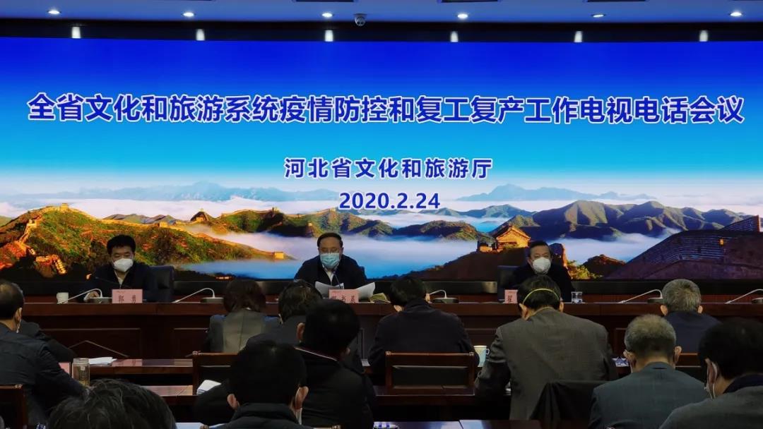 为认真学习贯彻习近平总书记关于统筹做好疫情防控和经济社会发展各项工作的重要指示精神,全面落实党中央、国务院和省委、省政府决策部署,在做好防控工作的前提下,有序推动全省文旅企事业单位复工复产,确保一季度工作开好局、起好步,努力完成全年目标任务,2月24日,河北省文化和旅游厅召开全省文化和旅游系统疫情防控和复工复产工作电视电话会议,对当前疫情防控和全省文旅行业复工复产工作进行安排部署。河北省委宣传部副部长、省文化和旅游厅党组书记那书晨出席会议并讲话,河北省文化和旅游厅党组副书记、副厅长翟玉虎主持会议。会上,河北省文化和旅游厅党组成员、副厅长郭勇传达了2月23日中央统筹推进新冠肺炎疫情防控和经济社会发展工作部署会议精神。河北省文化和旅游厅领导班子成员,厅直属单位和厅机关各处室主要负责同志在主会场参加会议,各市文化和旅游部门党政主要负责同志、承德市文物局党政主要负责同志在各地分会场参会。