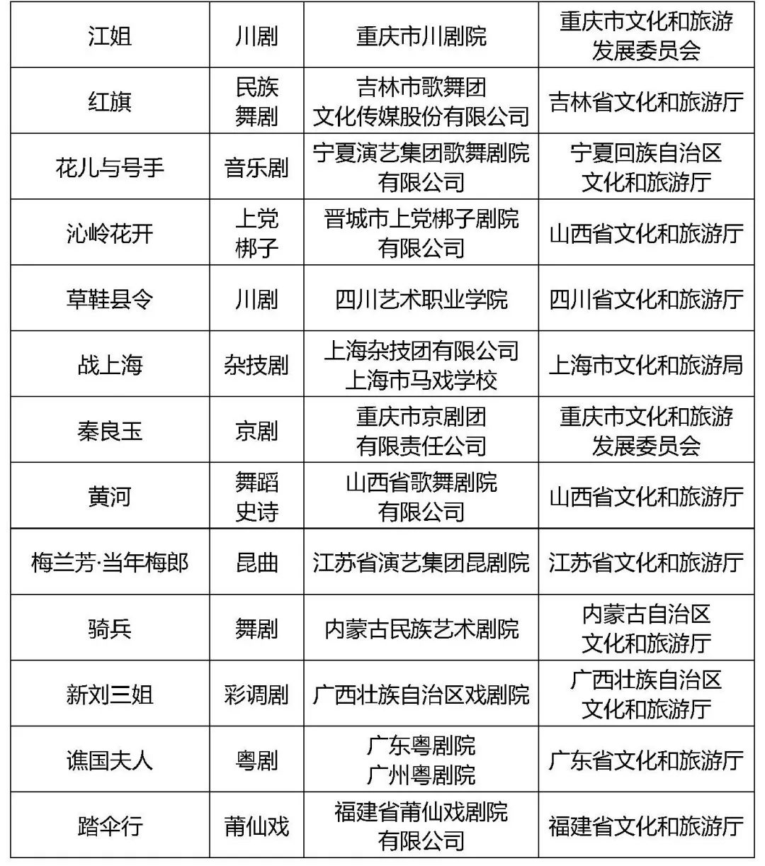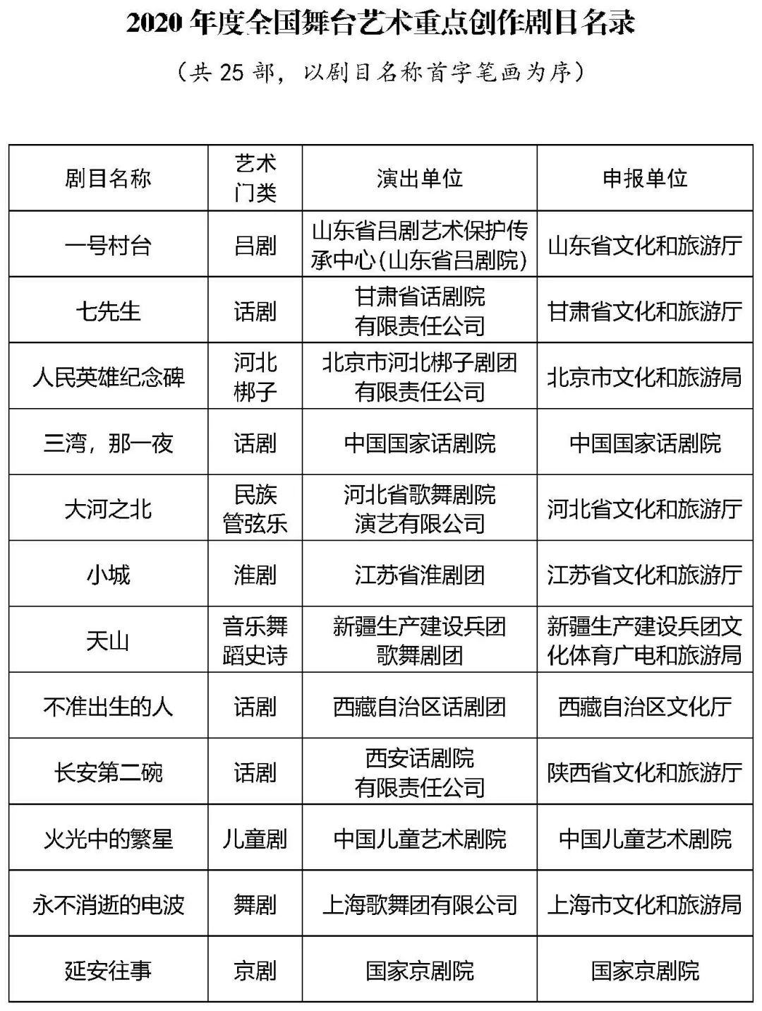 附件:1.2020年度全国舞台艺术重点创作剧目名录2.2020年度国家舞台艺术精品创作扶持工程重点扶持剧目