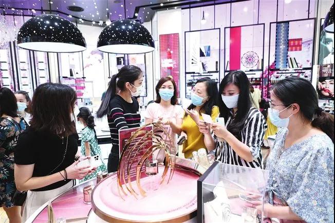 第三届中免海南离岛免税购物节上,三亚国际免税城内游客在选购商品