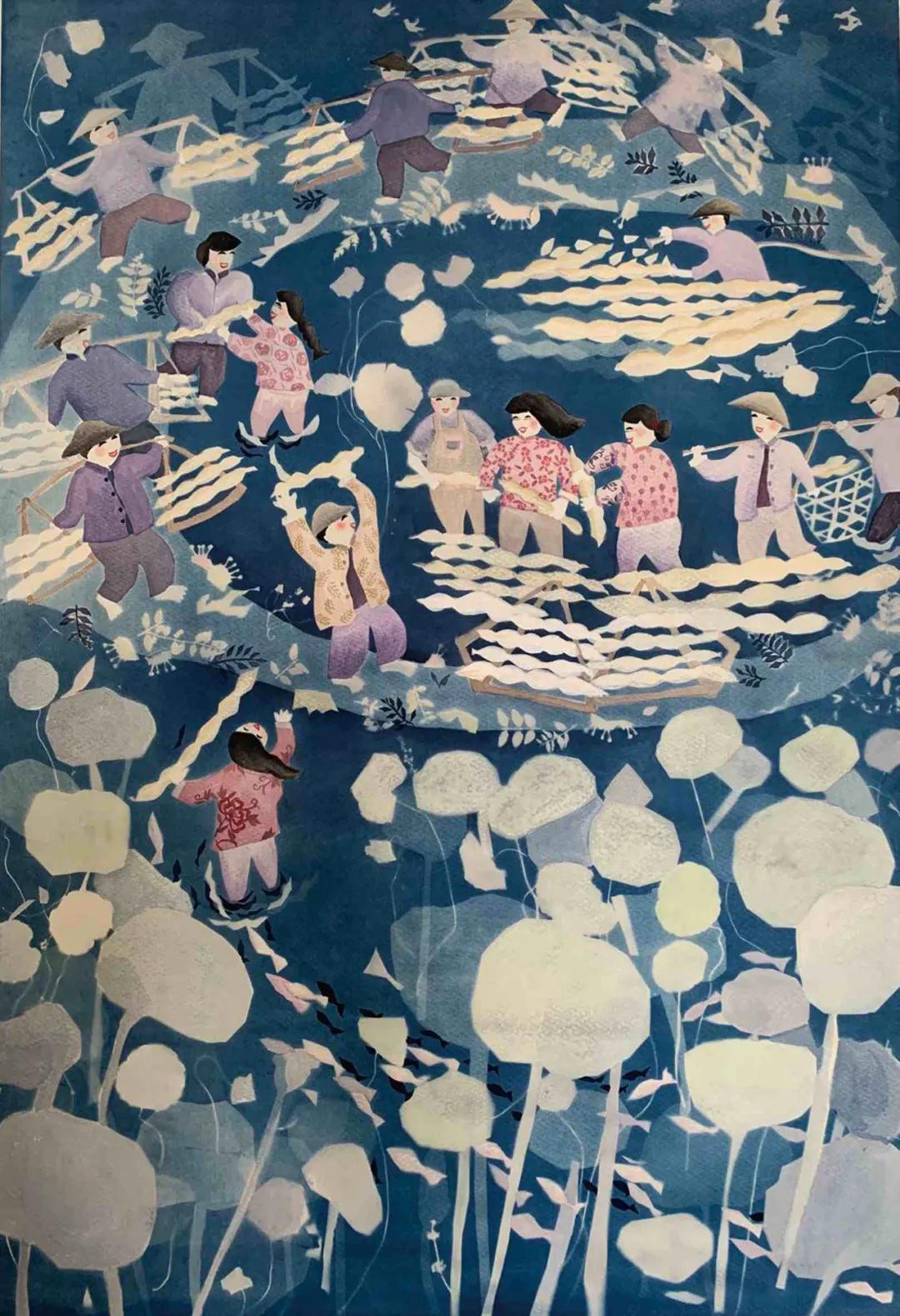 如今,农民画作者队伍的组成有了很大的变化。随着社会经济不断发展,城乡一体化进程不断提速,农民这一概念已经不再那么泾渭分明,他们已经不再是单一地耕田农作,而是扮演着多重社会角色,地处乡村、城镇、社区的“画乡”,纯农民作者锐减,很多不是农民的人也加入到农民画创作队伍里。