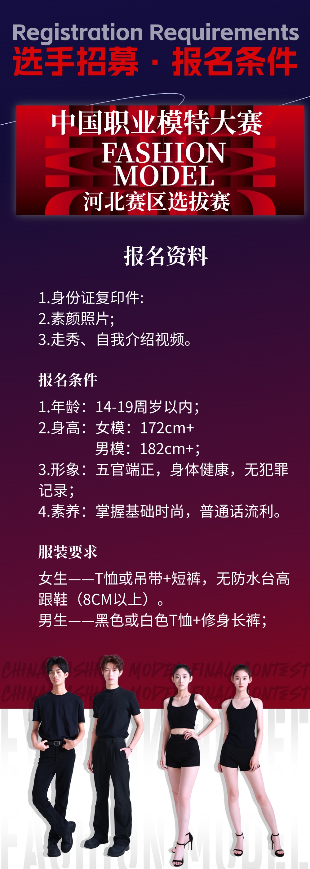 23届中国职业模特大赛河北赛区选手报名、大赛招商正式开启。